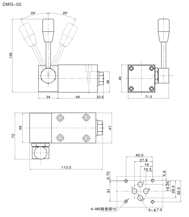 用手操作手動桿,使回路中油液的流向得以控制,達到方向控制之目的。