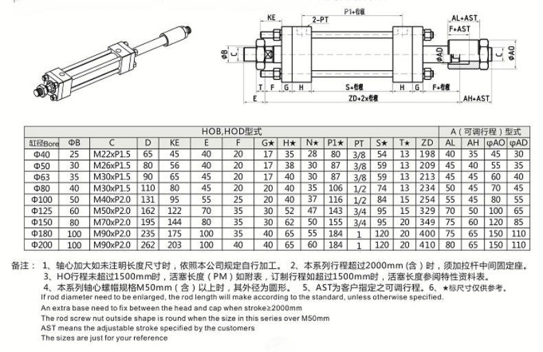 標準HOD+A型 雙軸型附可調螺帽外形安裝尺寸圖