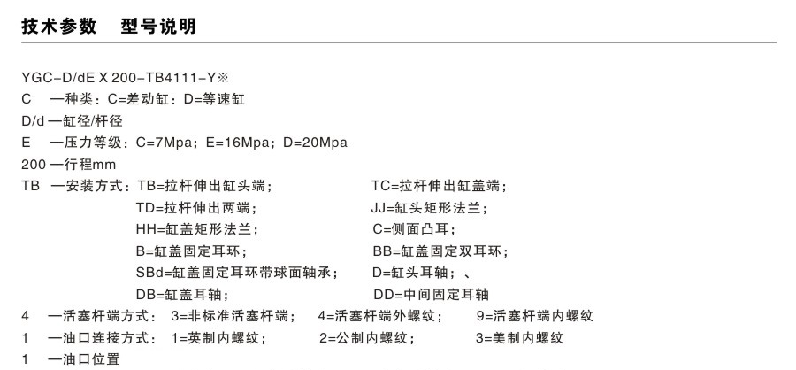 YGC/YGD拉桿油缸型號說明