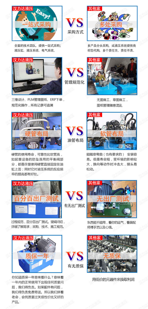 方案確認后,李總向我們詢問我們公司產品的質量和價格。。宋先生給李總介紹了漢達的公司歷史,漢力達專注液壓行業19年了,油缸和液壓泵站一起配套提供的,一站式采購,比較方便,出了問題也只要找到漢達就行,不需要多頭聯系供應商。而且標準液壓站的設計、加工流程都是非常規范的,圖紙PLM存檔,客戶資料EPR存檔,做過一次的所有記錄都有,以后照著那份做,液壓經銷門店的液壓站便宜的原因之一是在于工人現場組裝,沒有圖紙沒有相關管理成本。另外漢力達的標準液壓站采用的是硬管布局,外觀精美,使用壽命長,同時它對液壓系統的反應頻率的提高有好處。我們的產品質保一年,避免售后成本高,我們的供應商都是長期合作質量穩定的合作伙伴李總表示他們也是一樣,做任何一款產品,質量性能的保證,才是客戶想要的。
