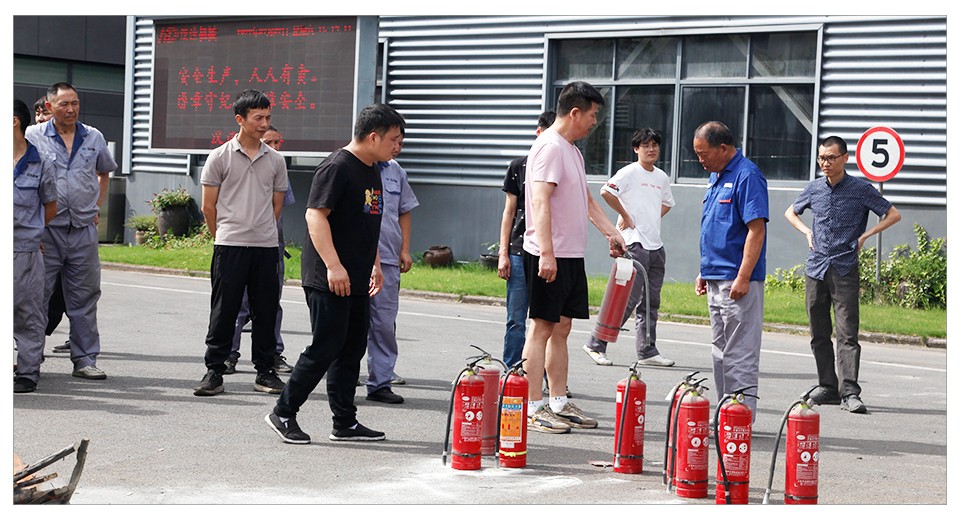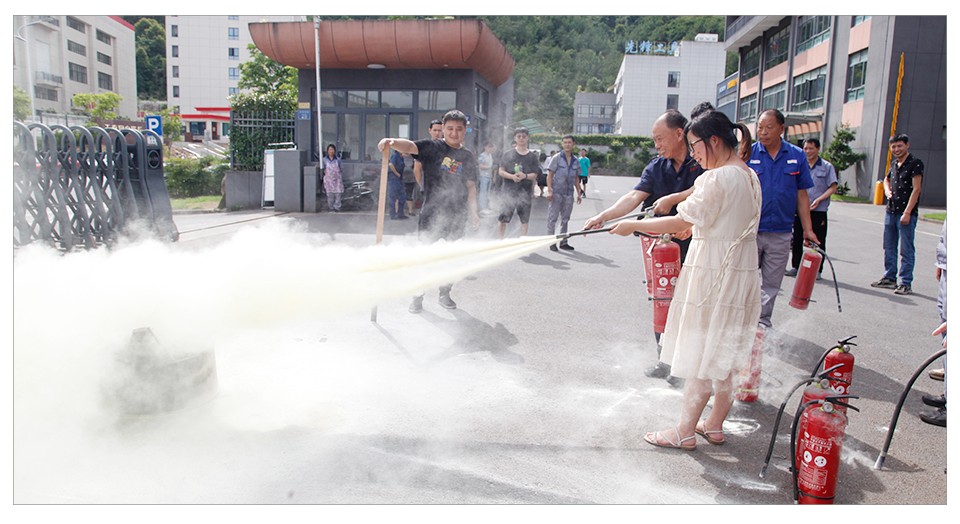 逃生演習結束后,安全員應國堅向員工們詳細講解了滅火器的使用方法,并點燃了提前準備好的木材。特殊崗位、門衛及車間、辦公室部分員工參與了滅火實戰。