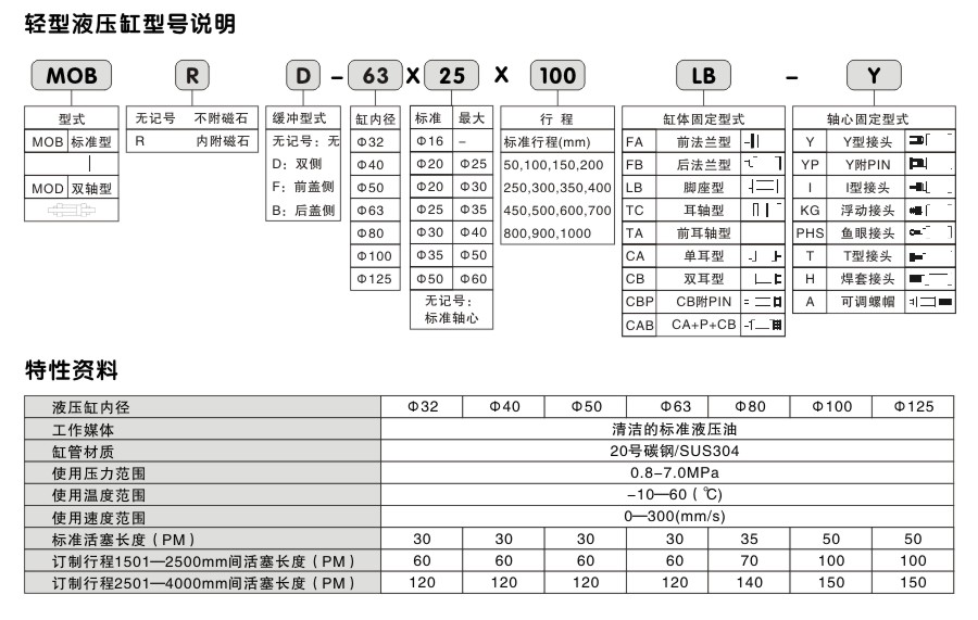 4)按照以上三條,可按照以下MOB油缸型號說明,明確您需要的型號;